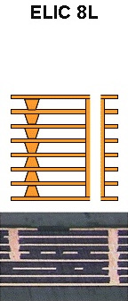 用增层法 (Build Up process) 及微盲孔 (Micro-via) 所制造的多层板,以实现高密度布线的特征